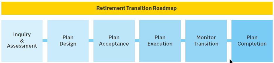 Utilizing a structured framework, our plans help to ensure seamless transitions for clients by providing proper thought and attention to each step in the process. The retiring FA is in the driver’s seat and guides: